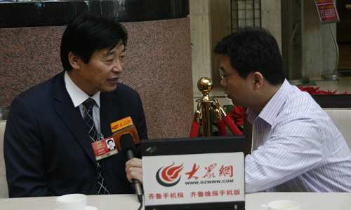 全國人大代表、山東華泰集團董事長李建華(左)接受本網記者專訪