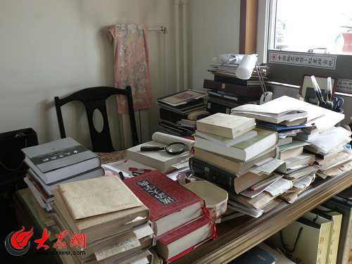 書香四溢的書房里,一張簡樸的書案旁,81歲高齡的中石先生精神矍鑠,神態安祥。今天上午,全國政協委員、著名書法家歐陽中石在其家中接受了本網和大眾日報的專訪。中石先生博學高雅,娓娓道來,讓記者感覺這不是一次采訪,更像是聆聽了一場精彩的講座。這是記者在中石先生書房用鏡頭記錄下的見聞,或許從我們的照片中,更能解讀出先生的博學與勤奮。圖為中石先生書桌。