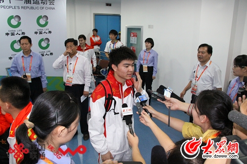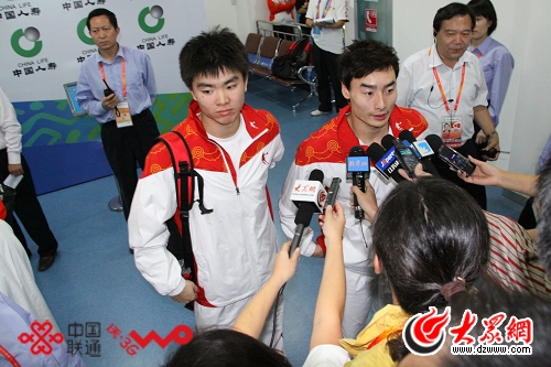 大眾網-山東聯通3G聯合報道(記者 趙爾印) 10月6日晚上是第十一屆全運會男子雙人板跳水比賽決賽,秦凱、張森組合在奧運冠軍匯聚的這場比賽中,力拔頭籌。賽后,秦凱表示,這塊金牌得來比預想的要順利一些,因為與他們一起爭第一的對手中,“冠軍大有人在”,于是他們從一開始就是咬緊牙關發揮,盡管是一路領先,但他們對比分始終在“咬”,咬到最后終于吃下這枚金牌。