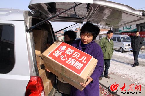 為了確保今天的行程,蒙牛阿拉乳制品有限公司濟(jì)南銷售處的工作人員5點多就起來裝貨,他們帶來了20箱蒙牛阿拉金裝佳智奶粉,足夠孩子們吃1年多。山東國健乳業(yè)的趙洋總經(jīng)理親自駕車,針對小寶貝們早產(chǎn),她特地帶來了兩箱的牛初乳和高培鈣油同補(bǔ),這些都是孩子們必須的保健品。