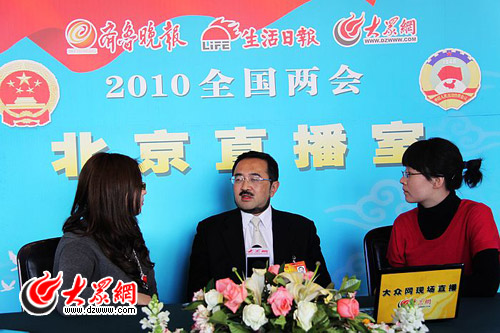 人大代表韓德云做客2010全國兩會北京直播室。大眾網(wǎng)特派記者 楊博 攝
