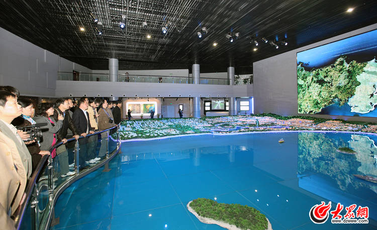 榮成規劃館采用高科技手段向采訪團全方位展示濱海城市的規劃藍圖。