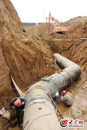 經過56天的全力建設,濟西應急調水供水工程在3月30日兩標段施工現場一次打壓成功,已具備通水條件。濟西應急調水通水后,可將濟西水源地的水調入市區管網,經八里橋水廠加壓調節,送入南部缺水區域。城區日增加供水能力10萬噸,可有效解決南部30萬居民吃水問題。