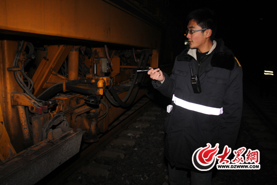 26歲的班長李法宗檢車設備運行情況。(大眾網記者 馬鑫攝)
