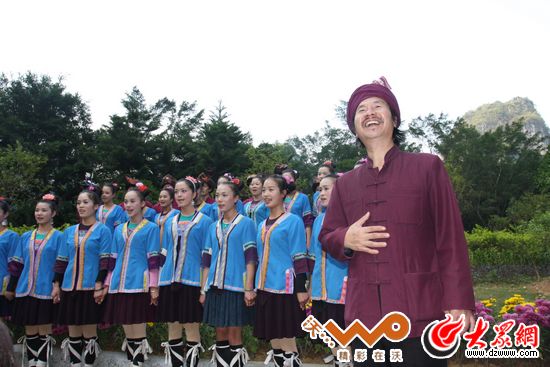大眾網-聯通3G陽朔11月22日訊(特派記者 劉國棟)走進一個民族,首先要認識的就是這個民族最能代表其文化的東西。對于侗族來說,最能代表侗族文化也最廣為人知的,想必就是侗族大歌了。侗族大歌是我國侗族地區一種多聲部、無指揮、無伴奏、自然合聲的民間合唱形式,歷史上分布在整個侗族南部方言區,目前主要流行于侗語南部方言第二土語區,其中心區域在黎平縣南部及與之接壤的從江縣北部、以及榕江縣車江、宰麻一帶。不過我們對于侗族和侗族大歌的采訪卻主要放在了桂林陽朔蝴蝶泉畔,因為那里有一個人,據說他在侗鄉無人不知無人不曉,據說是他讓侗族大歌唱的更遠唱的更響,這個人叫做吳金敏。