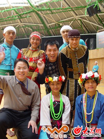 8年前,赴臺(tái)采訪的施曉亮一行與臺(tái)灣少數(shù)民族合影。(林德軍攝于臺(tái)灣九族文化村)