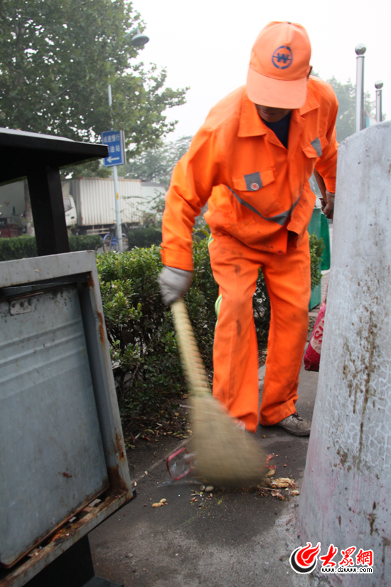 十一與重陽兩節(jié)“相會”究竟給千佛山景區(qū)附近環(huán)衛(wèi)工帶來多大壓力呢?記者在陳杰這里得到了一個答案:平時這里并沒有8個垃圾桶,路邊的幾個果皮箱一天最多需要清理一兩次;現(xiàn)在8個垃圾桶每個每天都要清理三次,也就是說,經(jīng)十一路一條馬路一天最少要“生”20多桶的垃圾,是平時工作量的兩倍還要多。