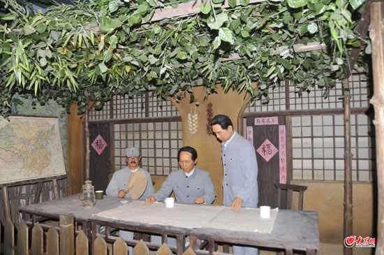 魯西南戰(zhàn)役紀(jì)念館內(nèi)的蠟像。
