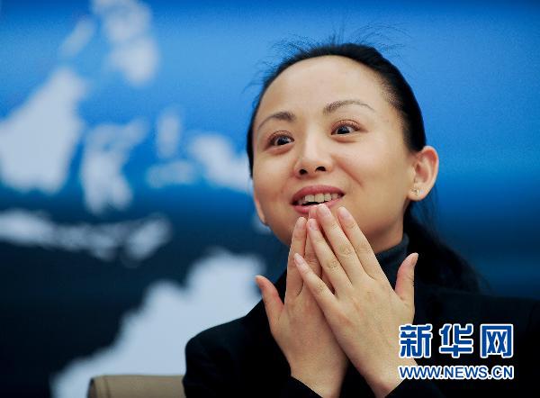 3月9日,邰麗華接受某網站的訪談。據介紹,她最喜歡綠色植物。新華社記者王建華 攝