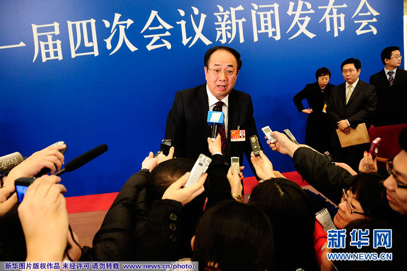 1、“這么多人!”(設計臺詞)。圖為全國政協(xié)十一屆四次會議新聞發(fā)言人趙啟正在發(fā)布會后面對一窩蜂擁上來的記者。新華網(wǎng) 翟子赫 攝