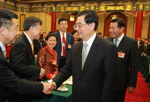 新華網(wǎng)北京3月4日電 中共中央總書(shū)記、國(guó)家主席、中央軍委主席胡錦濤4日親切看望了政協(xié)農(nóng)工黨、九三學(xué)社界委員,并在聯(lián)組會(huì)上同大家一起討論。