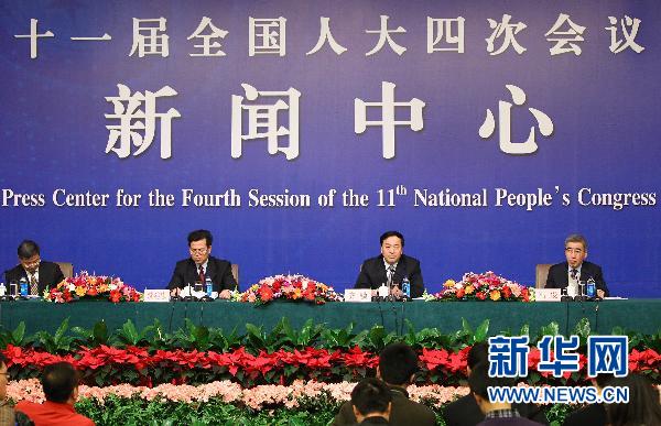 3月9日,十一屆全國人大四次會議在北京梅地亞兩會新聞中心多功能廳舉行記者會。住房和城鄉(xiāng)建設(shè)部副部長齊驥等就“保障性住房建設(shè)和房地產(chǎn)市場調(diào)控”等相關(guān)問題回答中外記者提問。新華社記者 邢廣利 攝