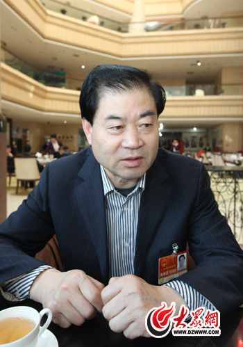 全國人大代表、山東省滕州市張汪鎮大宗村黨總支書記宗成樂接受大眾網記者采訪。