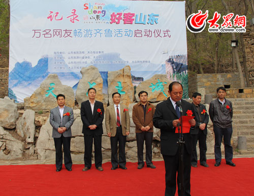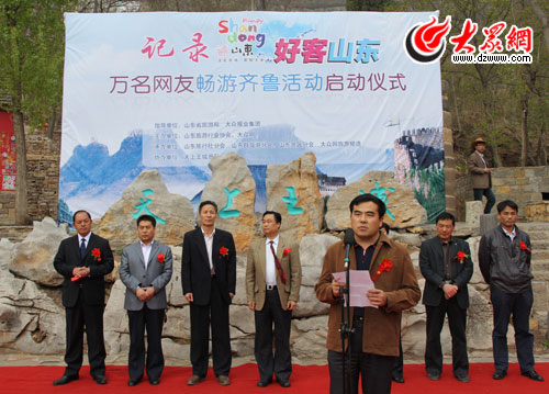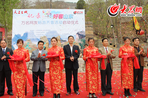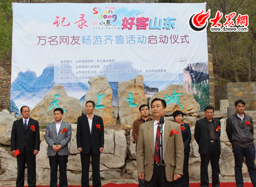 大眾網4月23日訊(記者 曲磊)2011年4月23日,由山東省旅游行業協會、大眾網主辦,天上王城景區承辦的“大眾網十周年·記錄好客山東萬名網友暢游齊魯活動”啟動儀式在沂蒙第一崮——沂水天上王城景區舉行。山東省旅游行業協會專職副會長丁再獻,臨沂市旅游局紀檢組長鞠永起,大眾網副總編輯姜長勇,總經理助理、運營中心主任陳月軍等出席啟動儀式并為活動剪彩。