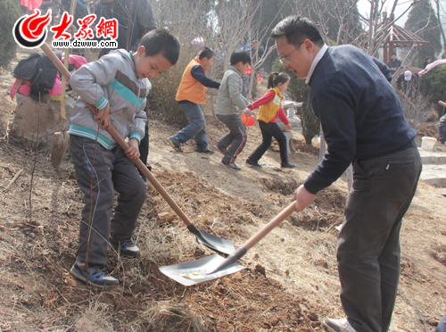 大眾網濟南3月12日訊(記者 隋喬)“給我一棵給我一棵!”“你知道這個樹的名字嗎?老師早就教給我們怎樣植樹了!苯裉焐衔,濟南小學生和家長組成近千人的植樹隊伍,來到濟南市紅葉谷,參加“大眾網十周年·十萬網友共植愛心樹”活動。來自濟南市緯二路小學、濟南市舜耕路小學的小學生們,在植樹的認真勁兒上絲毫不輸旁人。