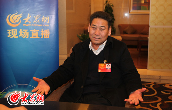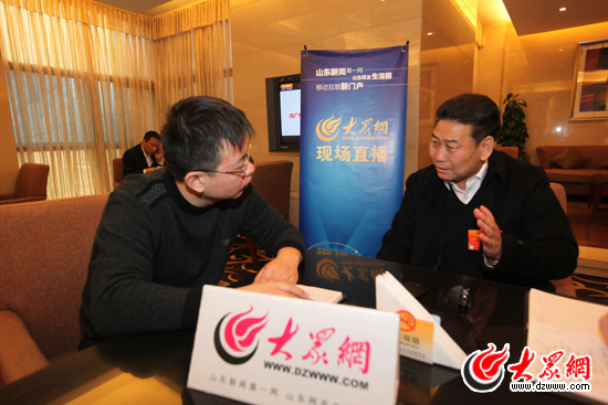 全國人大代表、知名鄉(xiāng)鎮(zhèn)企業(yè)家、山東臨沂華盛江泉集團有限公司董事長王廷江在接受大眾網(wǎng)采訪。