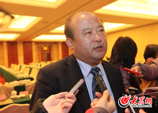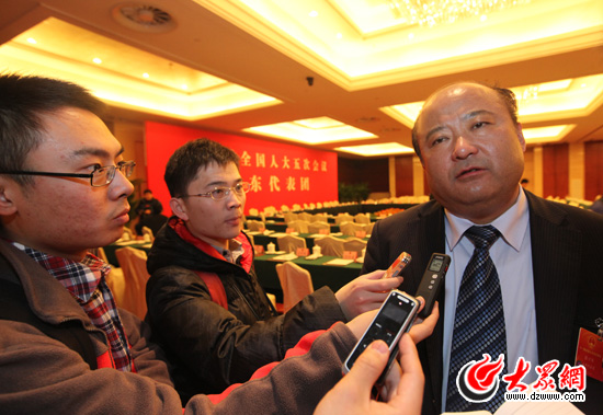 全國人大代表、臨沂市委書記張少軍接受大眾網記者(左一)采訪。