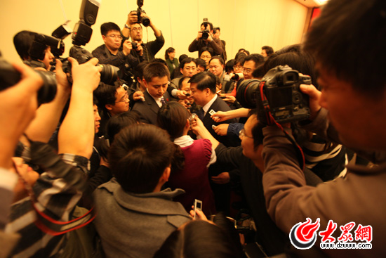 媒體記者包圍著姜省長爭相提問。(馬鑫 攝)