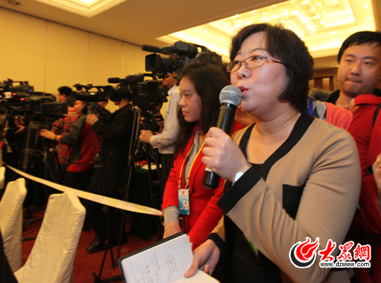 山東團開放日,大眾網記者現場向姜大明省長提問。(盛堃 攝)