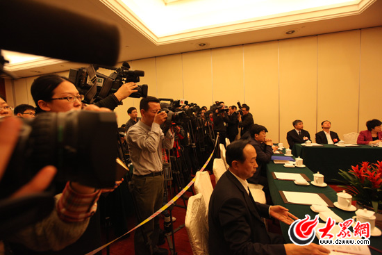 下午3:00,山東團開放日在中國職工之家三樓會議室準時舉行,來自各路媒體的記者們濟濟一堂,他們支起“長槍短炮”忙個不停。據統計,當天到場的共有來自境內、港澳臺和外國媒體86家、記者139人。
