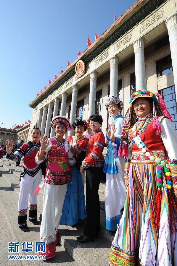 [提要] 3月14日,第十一屆全國人民代表大會第五次會議在北京人民大會堂閉幕。這是閉幕會前,幾位來自云南的全國人大代表在大會堂前合影。