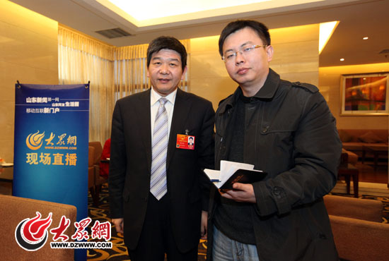 全國人大代表、省教育廳副廳長張志勇(左)與本網記者合影。