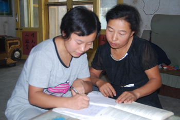 與丈夫的老家相比,羅宗珍在本鎮彭莊村的娘家就相對近一些,唯一的哥哥在十幾年前就因車禍去世了,家有年過六旬的啞母和身患多年冠心病的老父親。為了老人今后的生活,羅宗珍為老人買了養老保險、辦理了計劃生扶助獎金手續。身體硬朗的母親雖不會說話,但靠手勢與父親交流感情頗深,近2畝地全靠母親操持。平時,母親用腳蹬三輪車拉著父親上山砍些荊棘,回來喂羊。