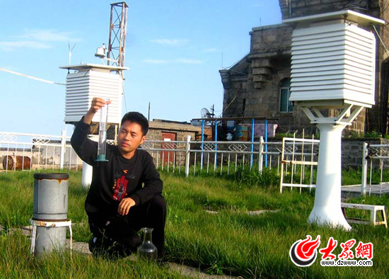 為保證氣象觀測資料的準確性、連續性,他經常在泰山頂峰惡劣的氣候條件下,冒著寒風爬上二十多米高的風塔維修儀器,冒著電閃雷鳴及時采集氣象資料、忍受著風濕病痛堅持在條件艱苦的山上值班,從事著最基礎的業務工作。
