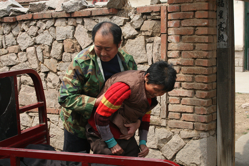 久病床前無孝子,更何況是夫妻。老任用他20余年的相濡以沫做出了反證。因?yàn)槿问靥镆睫r(nóng)地里干活,妻子又時(shí)刻需要人照料,兩個(gè)孩子上學(xué),家中又沒人可以幫上忙,于是任守田便找來拖車,放上被褥,把妻子拉到地頭,也是讓妻子散散心,自己邊干農(nóng)活,邊照顧妻子,就這樣一晃就是20年,期間的風(fēng)風(fēng)雨雨,說不盡的心酸與愁苦,只有老任知道,但他從沒發(fā)過一句牢騷,從沒有一句怨言。直到去年,已經(jīng)56歲的老任感覺拖車越來越沉重,到村西嶺上的坡就拉不上去了。沒辦法,雖然家徒四壁,他咬咬買了輛舊三輪摩托,為的是照顧好妻子。這是家中唯一值錢的東西。