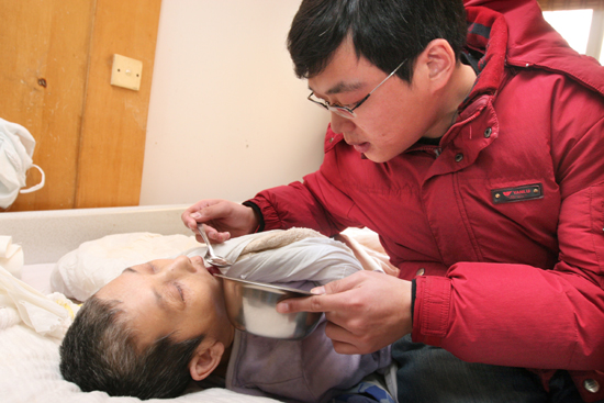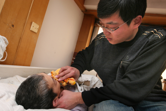 家中親戚多有不便,只有姥姥和舅舅能前來幫著照顧一下母親,孫成法這才意識到前方路途坎坷,他暗地里給自己鼓勁:“不管怎樣也不能放棄希望,一旦放棄了希望就不會有奇跡發生。”回首這兩年多的艱辛時光,孫成法平靜的臉上沒有悲傷,他說:“媽媽生我養我不易,我沒有工作,也沒有能力回報她,我能做的只是好好伺候她。”