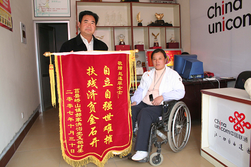趙連翠說(shuō),記不清有多少次被風(fēng)刮被雨淋,有多少次輪椅翻了被路人扶起,更記不清手上因轉(zhuǎn)動(dòng)輪椅被磨起了多少個(gè)血泡,有一次她還被狗咬傷。正是在賣手機(jī)卡的期間,她結(jié)識(shí)了很多殘疾人,了解了殘疾人生活的艱辛,她決定要靠自己的力量,去幫殘助殘,把它作為自己下半生奮斗的動(dòng)力和生活目標(biāo)。