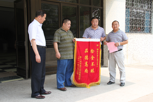 拾金不昧,彰顯審計精神。2011年8月2日上午,該同志在吃早餐時,撿到一個手提包,包內有兩萬多元現金及信用卡、身份證, 還有幾十萬元的業務往來票據。劉明義同志及時尋找失主,并尋求110幫助,最后在警察同志的配合下將皮包歸還失主,并不留姓名離開了現場。失主為表示感謝,根據當時記住的車牌號,經多方打聽,了解到劉明義是市審計局的工作人員,于是訂做了錦旗、寫了表揚信,并聯系“民生面對面”欄目組來到審計局對劉明義表示感謝。面對鏡頭,劉明義同志說:“我只是做了一件別人也會這樣做的事,不值得報道,我不能接受采訪。”