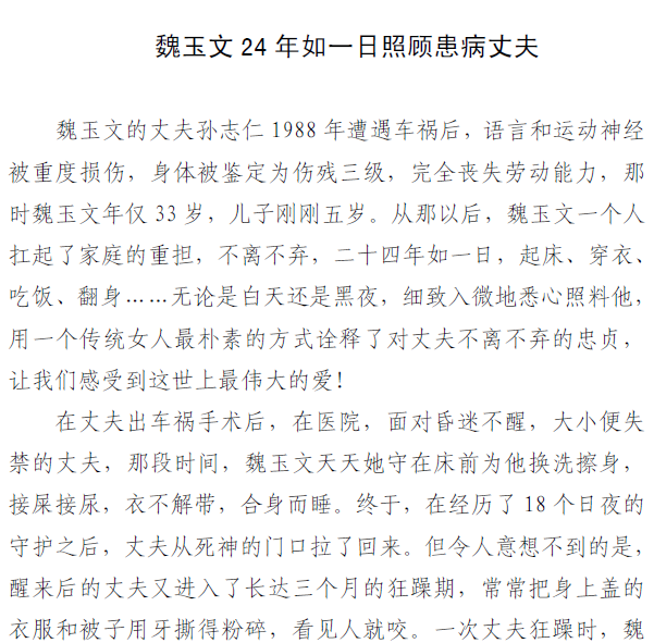 [提要] 24年如一日照顧患病丈夫,讓我們感受到這世界上最偉大的愛