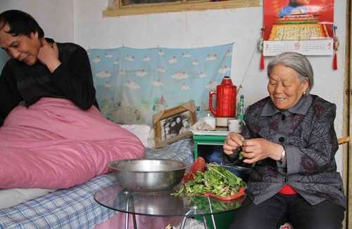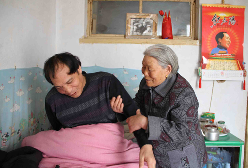 徐洪升總說:“我能活到現(xiàn)在,全靠俺娘、全靠礦上了。”常年躺在床上,使徐洪升身體的免疫力下降,比較容易生病。為了讓兒子少生病,老人冬天為兒子縫制加厚的被子,夏天的時候每天都為兒子擦洗身體,定期對腿部和腳進行按摩,更是想著法的給兒子做好吃的,看著兒子吃飯吃多了,老人心里就高興。老人還經常用輪椅推著兒子出去走走,讓兒子和大家拉呱聊天。