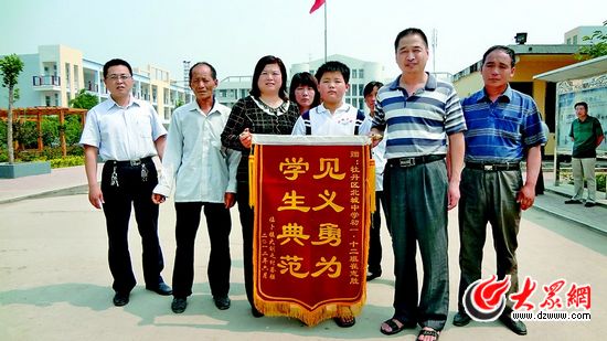 回到家中的蔡強不敢將自己溺水的事情告訴爺爺和奶奶,恐懼和壓力讓蔡強發了高燒。爺爺奶奶對此非常納悶,“孩子怎么突然就病了?”其實,前幾天,蔡強的奶奶聽到村里很多人在議論崔樓池塘有孩子溺水被救?墒,直到6月1日一早,她才得知,溺水的正是自家的孫子。趕緊將此事告訴了遠在的上海打工的蔡強的父母。蔡強的母親連夜趕回鄄城,6月2日下午,專程到臨濮鎮崔樓村的崔志勝家里登門表示感謝,蔡強的媽媽抓住他的手,拿出200元錢塞給崔志勝,表示一輩子都不會忘記她兒子的救命恩人。崔志勝說什么也不要她的錢,說這件事是應該做的,換了誰,看到別人有生命危險,都會奮不顧身地去幫忙,去搶救一個人的生命。 6月4日上午,蔡強的家人把一面寫有“見義勇為,學生典范”的錦旗送到牡丹區北城中學,感謝崔志勝對蔡強的救命之恩。