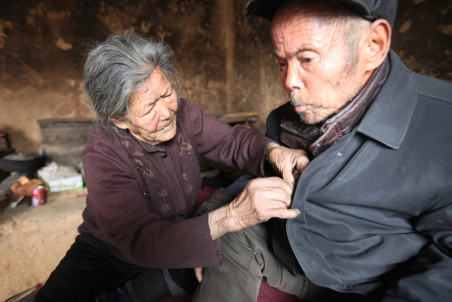 每天早上,要靠老母親給穿上衣服、鞋襪后把我抱下來(lái),給我做好飯,要把飯端到桌子上,把筷子遞到手里,兩手托著才能吃點(diǎn)飯。要想站起來(lái),也得靠母親把我抱起來(lái),不怕別人笑話,就連大小便也得靠俺娘我才能蹲下和站起來(lái)。”據(jù)了解,謝加富的弟弟叫謝加遠(yuǎn),十幾年前得的也是同樣的病,2008年去世。趙家美老人從那時(shí)起一天要照顧兩個(gè)孩子的飲食起居。趙家美老人說(shuō):“那時(shí)兩個(gè)兒子都得了病不能動(dòng)了。因?yàn)椴荒苌舷麓玻䞍鹤釉谖堇锎蛄艘粋(gè)地鋪,這樣方便了些。我除了去做飯就是圍著他們兩個(gè)轉(zhuǎn),一天下來(lái)累得我腰酸背痛。那時(shí)候還行,現(xiàn)在硬撐著也干不動(dòng)了,我還能活幾年呢?我死了誰(shuí)來(lái)照顧他呢?”老人一臉愁容,老觀念對(duì)兒子未來(lái)生活的無(wú)限擔(dān)憂。90歲的她對(duì)此越來(lái)越感到吃力和無(wú)奈,但趙家美老人沒(méi)有別的選擇,沒(méi)有人代替她或幫助她。她這樣照顧喪失生活自理能力的兒子已經(jīng)快二十年了。