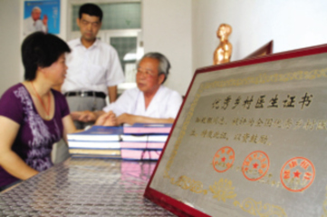年過古稀的孫兆銀早年曾拜當地名醫王中湖老先生為師,后在東北空軍司令部四六三醫院和四六二醫院連續工作10年。1970年,孫兆銀回鄉開了一家診所,自己行醫后的孫兆銀并沒有把掙錢放在第一位,在他眼里治病救人是醫生的天職,比什么都重要。考慮到許多老人常年臥病在床,行動不便,他就擠出時間,身背藥箱到附近村莊巡診。為讓村里的老老少少都能健康生活,孫兆銀免費為村民體檢,并制作了健康查體檔案,他還利用外出巡診的時間對全村進行了一次詳細的調查摸底,建立了西孫村慢性病人分布圖,定期上門為他們檢查身體。今年90歲的孫現順是孫兆銀每隔幾天就要登門問診的對象之一。每次上門,孫現順老人都要拉著孫兆銀的手激動不已,據孫現順老人介紹,如果沒有孫醫生,深受坐骨神經痛折磨的他早在40年前就可能不在人世了。