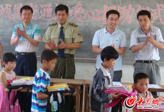 2010年5月19日,鄄城縣交通運(yùn)輸局維修科第一次結(jié)對(duì)助學(xué)捐贈(zèng)儀式在左營(yíng)鄉(xiāng)中心校舉行,來(lái)自全鄉(xiāng)多處小學(xué)的孫龍、劉泰等15名貧困學(xué)生分別收到了書包、鋼筆、文具盒和筆記本等學(xué)習(xí)用品。2011年1月18日上午,張培軍等9名同志又到舊城鎮(zhèn)走訪慰問(wèn)貧困學(xué)生,為周西棟等3名貧困學(xué)生家庭分別送去了兩袋面粉、兩桶食用油和兩箱方便面。他們的愛(ài)心助學(xué)行動(dòng),讓三個(gè)貧困家庭在嚴(yán)寒的冬日里,感受到了濃濃的暖意。他們這次救助的周西棟、申惠丹和王震三名貧困學(xué)生,都是單親家庭,生活十分拮據(jù),尤其是周西棟同學(xué),父親癱瘓?jiān)诖玻畈荒茏岳怼V芪鳁澯盟怯仔〉碾p肩撐起了整個(gè)家庭的重?fù)?dān),不僅要自己動(dòng)手做飯、洗衣,而且還要照顧重病父親的吃、喝、拉、撒、睡。但是周西棟同學(xué)卻沒(méi)有被沉重的生活負(fù)擔(dān)所壓倒,學(xué)習(xí)非常刻苦,成績(jī)十分優(yōu)異。當(dāng)看到張培軍等9名同志送來(lái)的面粉、食用油和方便面等生活必需品時(shí),周西棟父親這位飽受生活磨難的中年漢子也禁不住潸然淚下,泣不成聲。看到三位孩子的不幸遭遇,張培軍等人一直表示,他們將把這種愛(ài)心活動(dòng)長(zhǎng)期開展下去,決心盡自己的綿薄之力,讓更多的孩子享受到社會(huì)大家庭的溫暖,順利完成學(xué)業(yè),將來(lái)成為國(guó)家和社會(huì)的棟梁之才。