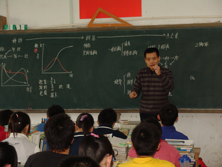 敬業(yè)奉獻,工作干得癡狂。13年來,教學和學生是他生活的全部。為不斷提高教學水平,白天總是抽出時間聽其他老師的課。晚上放學后撰寫教學筆記和心得體會,已累計寫了30多本。經(jīng)過長時間的摸索、實踐,他的課成為學生們最喜愛的課之一。2006年來李曙光同時擔任班主任、學科組長、教科室副主任和高三4個班的教學任務,每天都要早出晚歸、加班加點,連上廁所都要跑起來。由于長時間休息不好、吃飯不規(guī)律,2009年4月查出食道癌,術(shù)后三天,他就通過電話和代理班主任交流工作,并不斷寫信教育學生。術(shù)后不久,不顧醫(yī)生和家人勸阻,毅然返校工作。由于食道和胃大部分被切除,李曙光現(xiàn)在的消化功能嚴重紊亂,簡單的日常生活也變得十分艱難。但是他卻說:“教學是老師的本分,課堂是老師的崗位,只要還能站在講臺上,只要還能在學生們中間,什么樣的困難我都能克服。”雖然是帶病上班,他卻還像過去一樣,每天早到晚歸。“能與學生們在一起,是我最大的快樂。趁著我現(xiàn)在還能站在講臺上,我希望能再為教育多出一份力。”