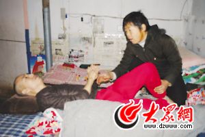 2006年的這一天對于陽信縣流坡塢鎮(zhèn)西茍村村民茍振水一家來說是最黑暗的一天。準(zhǔn)備蓋新房的茍振水騎著摩托車到鎮(zhèn)農(nóng)信社取錢,路上不慎發(fā)生事故,導(dǎo)致頭部受到重創(chuàng),雖搶救及時,但因傷勢較重,成為植物人,生命難保。“當(dāng)時,俺就覺得天塌下來了!”劉春梅說。幸虧好心人發(fā)現(xiàn)茍振水出事后,撥打了120,茍振水被及時送到了縣人民醫(yī)院搶救,后又轉(zhuǎn)到濱州醫(yī)學(xué)院附屬醫(yī)院。盡管醫(yī)生盡了最大的努力,但是因腦細(xì)胞受損,茍振水深度昏迷了50多天,還是沒有醒來,臨床表現(xiàn)為對外界無認(rèn)知能力、與外界無法溝通、無行動、日常生存所必須的作息(飲食、翻身、沐浴、更衣、排泄物處理等)完全由旁人照料。看著昔日生龍活虎的丈夫,如今沒有任何感覺、一動不動地躺在病床上,劉春梅的心,碎了!但是當(dāng)醫(yī)院表示已無能為力時,劉春梅這位樸實而堅強(qiáng)的農(nóng)村婦女沒有放棄。當(dāng)時,已花掉5萬多元錢的劉春梅實在沒有能力讓茍振水繼續(xù)住在醫(yī)院里了,不得不把丈夫接到了家里自己照料。