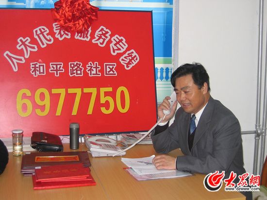 2004年3月18日,“人大代表服務專線”開通了。此事經媒體一宣傳,“服務專線”成了“服務熱線”,當天就接了6個外省市的電話,第二天接到全省各地的100多個,還有27個外社區的居民來訪。家住佛山苑小區的退休老人朱錫環治療乳腺癌花了5萬多元,醫療費一直報銷不了。電話里老人非常激動,又十分無奈。劉永海接聽電話后,找有關單位反映了老人的難處,最終朱錫環的醫療費得到了部分報銷。家住和平路社區的73歲的張吉慶老人,是從山東省原機械廳的一個公司里退休的,住進了和平社區。他通過“人大代表服務專線”對劉永海說:“我退休進社區后,福利待遇歸誰管?有沒有這方面的文件給我看看?”劉永海馬上與辦事處勞動和社會保障中心聯系,查找有關的文件規定。隨后,他又將復印好的有關文件送到了張吉慶老人手里。