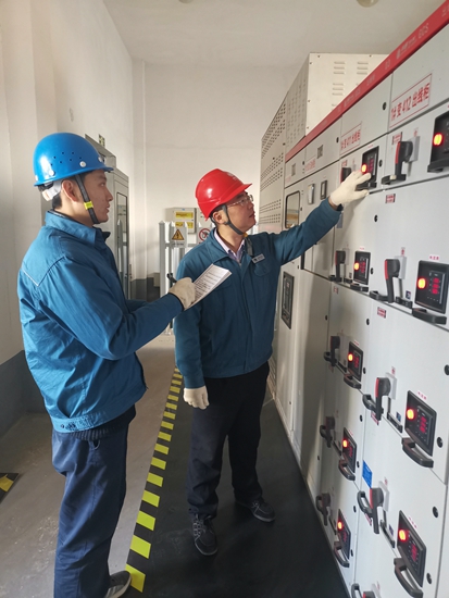2019年12月4日孫林(圖右)與同事巡視碧水嘉園配電設(shè)備