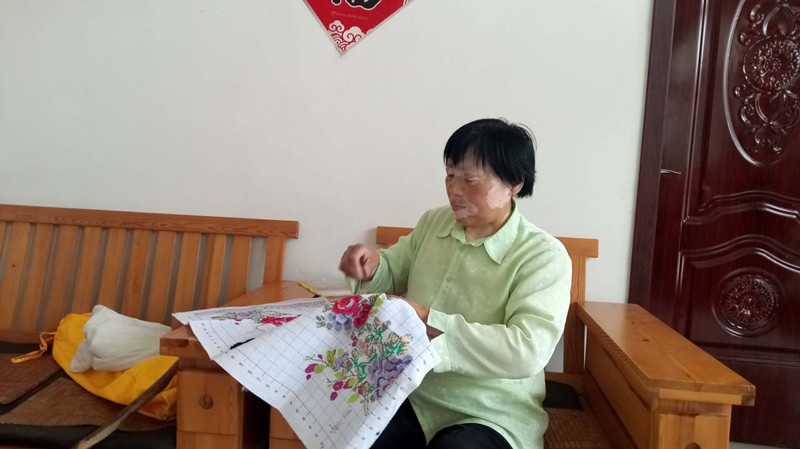 除了繡十字繡,劉奉萍還會做縫紉,有時接點廠里的零活補貼家用,最多的還是免費幫村里人縫縫補補,別人幫自己,自己力所能及的幫助別人,就感到心里很滿足。街坊鄰居也不時找她聊天、幫忙,覺得煩心事找她一說心里就敞亮。