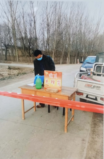 新冠疫情發(fā)生后,田新剛抱著“必定戰(zhàn)勝疫情”的決心,喊出“我是黨員我先上”口號(hào),主動(dòng)到防控一線值班、排查、消毒……與此同時(shí),他第一時(shí)間向村里捐款。