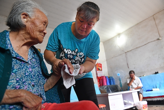自從兩人癱瘓后,張珍就沒(méi)睡過(guò)一個(gè)囫圇覺(jué),每夜都得起來(lái)三四次,到大娘床前看看,給她掖掖被子,幫老人翻個(gè)身,伺候伺候小便,然后再去照料一下大伯哥。每個(gè)晚上,張珍都不敢睡沉,白天總是渾身酸痛。農(nóng)忙時(shí)下地干活時(shí),她都是把兩人安頓在沙發(fā)上,讓大伯哥看著點(diǎn)大娘,把準(zhǔn)備好的飯菜放在伸手就能拿到的地方。有時(shí)剛到地里,大娘想方便,大伯哥一個(gè)電話,她就得從幾里遠(yuǎn)的地里,飛奔到家。由于兩人都是血稠的毛病,張珍每年都會(huì)請(qǐng)村衛(wèi)生室的醫(yī)生到家里為兩位老人沖血,在她的精心照顧下,兩人的病情沒(méi)有隨著年齡增長(zhǎng)加重,反而逐步好轉(zhuǎn),氣色也比從前紅潤(rùn)許多。