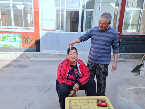 從此,劉興軍開始了對(duì)妻子的康復(fù)訓(xùn)練。開始,把她推在輪椅上練習(xí)坐立,到戶外活動(dòng),曬太陽(yáng),慢慢鍛煉活動(dòng)四肢。后來(lái)每天用布帶固定妻子背靠在站櫥旁練習(xí)站立半小時(shí),經(jīng)常推她到車輛少的地方游玩散心。最后在院子里焊裝鐵管欄桿讓她扶著練習(xí)走路,劉興軍總是形影不離的守護(hù)著她。直到2017年,妻子開始能獨(dú)立行走了。每當(dāng)劉興軍聽到別人的贊揚(yáng),他總是說(shuō):“夫妻之間這都是應(yīng)該的,如果換了我有病,妻子也會(huì)這樣照顧我!彼纳婆e大愛贏得了全村老少爺們的贊譽(yù),人們都說(shuō):“少年夫妻老來(lái)伴,道理雖簡(jiǎn)單,但真正做到像興軍兩口子那樣一直相敬如賓、患難與共卻并不容易啊!