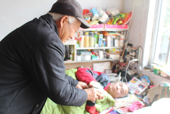 鄭京富的弟弟鄭京友,今年65歲,20多歲時因為患上嚴(yán)重的風(fēng)濕性關(guān)節(jié)炎而導(dǎo)致癱瘓,常年臥床不起。鄭京友年輕時是個帥小伙,不僅有工作,而且生病前已經(jīng)定了親事,但本該幸福的人生軌跡卻因為一場突如其來的大病而徹底改變。剛剛患病的前幾年,鄭京富帶著弟弟把昌樂、濰坊的醫(yī)院都跑遍了,但效果甚微,康復(fù)的希望在尋醫(yī)求藥的過程中一點點破滅,鄭京友也逐漸對生活失去了信心。得知自己的病情后,為了不耽誤人家姑娘,鄭京友執(zhí)意和要過門的媳婦吹了。想到漫長的后半生要躺在床上度過,他痛不欲生,精神幾度崩潰。為了讓鄭京友卸下思想包袱,勇敢地生活下去,在那段難熬的日子里,不善言辭的鄭京富選擇日夜陪伴著弟弟,用最樸實的兄弟情和愛,溫暖和支撐著弟弟堅強、樂觀地去面對,重新燃起他對生活的希望。鄭京友生病后,為了更好地照顧他,鄭京富和妻子王秀英兩人做了明確分工:由妻子王秀英負(fù)責(zé)弟弟的衣食起居,做飯、送飯、洗衣服;鄭京富自己則成了弟弟的貼身“侍衛(wèi)”,無論走到哪里都帶著他,給他端屎端尿、擦洗身體。這一照顧,就是四十多年。提起過去的四十多年,鄭京富說苦點累點都不算什么,最難的日子已經(jīng)咬牙挺過來了,現(xiàn)在他最擔(dān)心的是隨著年齡增長,自己和老伴的身體都大不如前,眼睛不好使了,腿腳也不靈便了,以后照顧不了弟弟了怎么辦?有年冬天,鄭京友突然發(fā)低燒,吃了幾天藥也不管用。鄭京富想帶弟弟去醫(yī)院,但由于自己年紀(jì)大了力氣不夠,根本背不動。無奈之下,鄭京富撥打了120。住院期間,鄭京富夫妻二人堅持每天去醫(yī)院照顧弟弟,醫(yī)療費都是鄭京富的兩個兒子和親戚湊的。“當(dāng)時住院的錢是我兩個兒子和親戚湊的,孩子們也都有自己的家庭,雖然有心照顧叔叔,但使不上力。”鄭京富說。