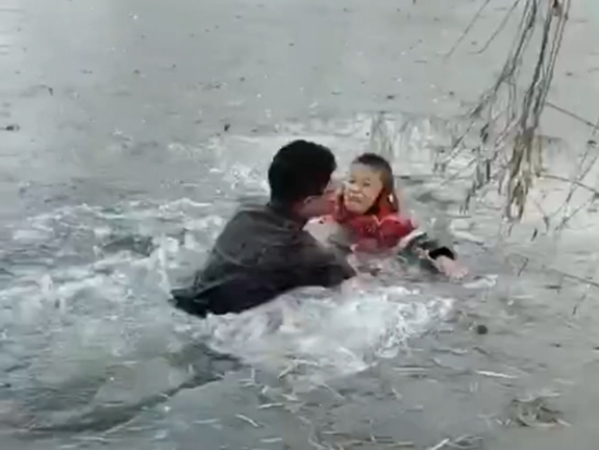 耿虎見義勇為救出落水兒童
