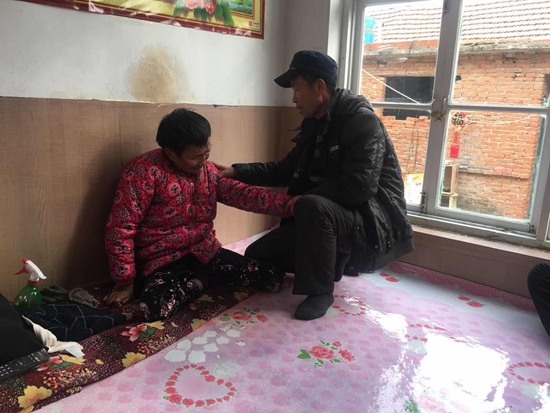 2002年,翟同金的妻子因病導(dǎo)致下肢癱瘓,喪失生活自理能力,為了給妻子攢錢(qián)治病,他省吃?xún)用,一年到頭舍不得給自己買(mǎi)一身像樣兒的衣服,皺紋堆滿(mǎn)臉龐,60歲出頭的他看起來(lái)卻像是70歲的人。由于妻子癱瘓無(wú)法下床,吃喝拉撒都由翟同金親自照料。為了讓妻子有足夠的營(yíng)養(yǎng),他總是把家里僅有的一點(diǎn)肉和菜喂給妻子吃,自己只吃饅頭。擔(dān)心妻子生褥瘡,他一天給妻子換洗4次尿墊子,隔段時(shí)間就幫妻子翻翻身。冬天井水冰涼,他也堅(jiān)持給妻子勤換洗尿墊子,手凍得通紅,沒(méi)有知覺(jué)。夏天的夜晚天氣悶熱,他就堅(jiān)持搖扇子給妻子通風(fēng)降溫,一只手酸了就換另一只,直到妻子睡著。為了防止妻子因長(zhǎng)時(shí)間不鍛煉肌肉萎縮,翟同金通過(guò)各種方式自學(xué)了一套按摩手法,一有空就給妻子按摩。翟同金的付出,讓妻子覺(jué)得自己拖累了他,經(jīng)常郁郁寡歡,以淚洗面,甚至有幾次想要輕生,翟同金看在眼里,痛在心里。自那以后,翟同金經(jīng)常給妻子講自己知道的趣事、新聞,每天早上給妻子細(xì)心梳洗,兩三天給妻子換洗一身衣服,天氣好的時(shí)候,就用輪椅推著妻子出門(mén)走走,曬曬太陽(yáng),逐漸妻子臉上的笑容多了。家里的收入全靠翟同金一個(gè)人在地里忙活,盡管生活十分困難,但他卻始終沒(méi)有放棄對(duì)妻子的治療,跑遍各大醫(yī)院給妻子尋找好的治療辦法。