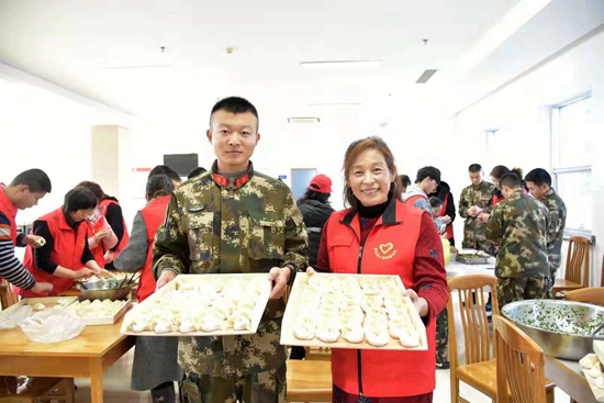 當看到駐牟官兵、消防員大都是十八九歲處于青春期的孩子,離家遠、訓練苦,且平日因為訓練時間緊,經常吃不上一頓家人親手包的餃子,李紅就組織服務隊的姐妹們利用節假日時間到部隊為官兵們包餃子。
